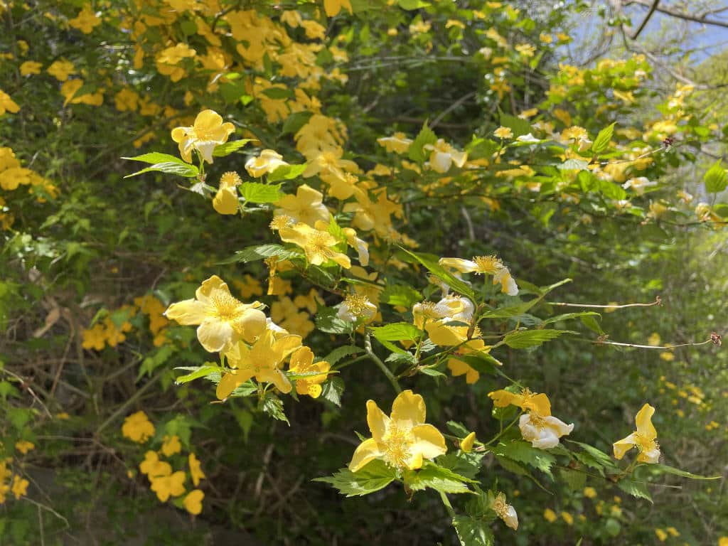 また場内や周辺の里山でも山吹や桜、秋に実を付けるアケビなどの花も咲き始めました。