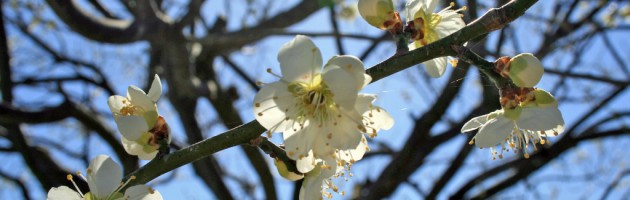 梅の花、五分咲き