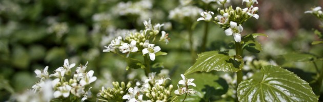 新緑の春を告げる白い花