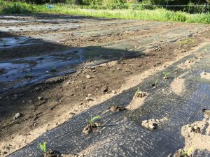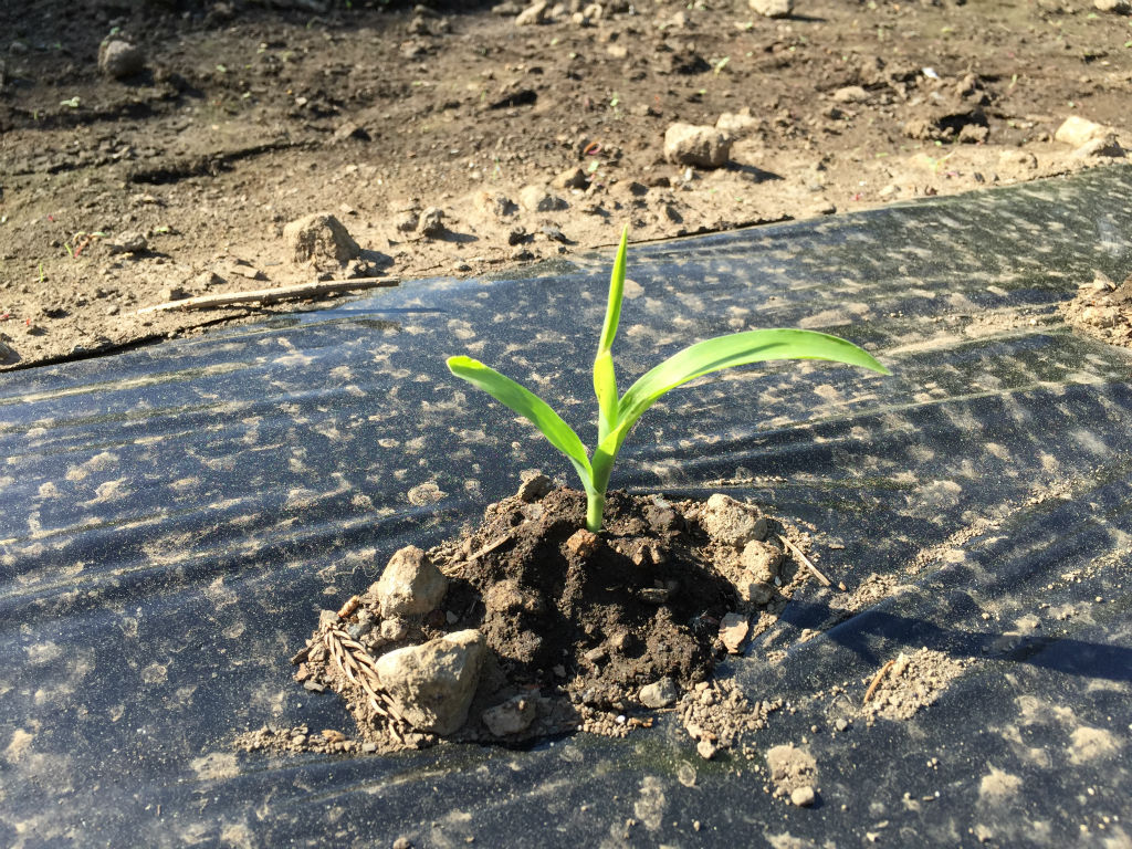 今日なにげに畑をのぞいたら何ととうもろこしの苗がちょこんと出ていました!!