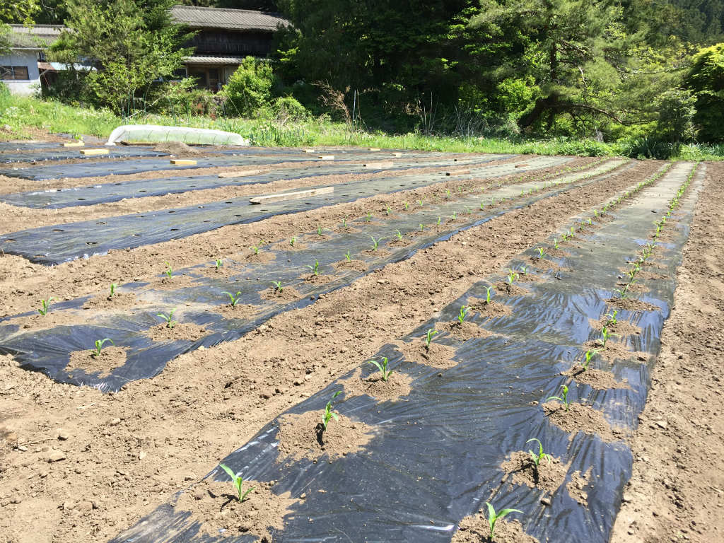 畑の手前4列を先行して種まきしたため、奥の6列はこれから芽が出て発芽してくる予定です。