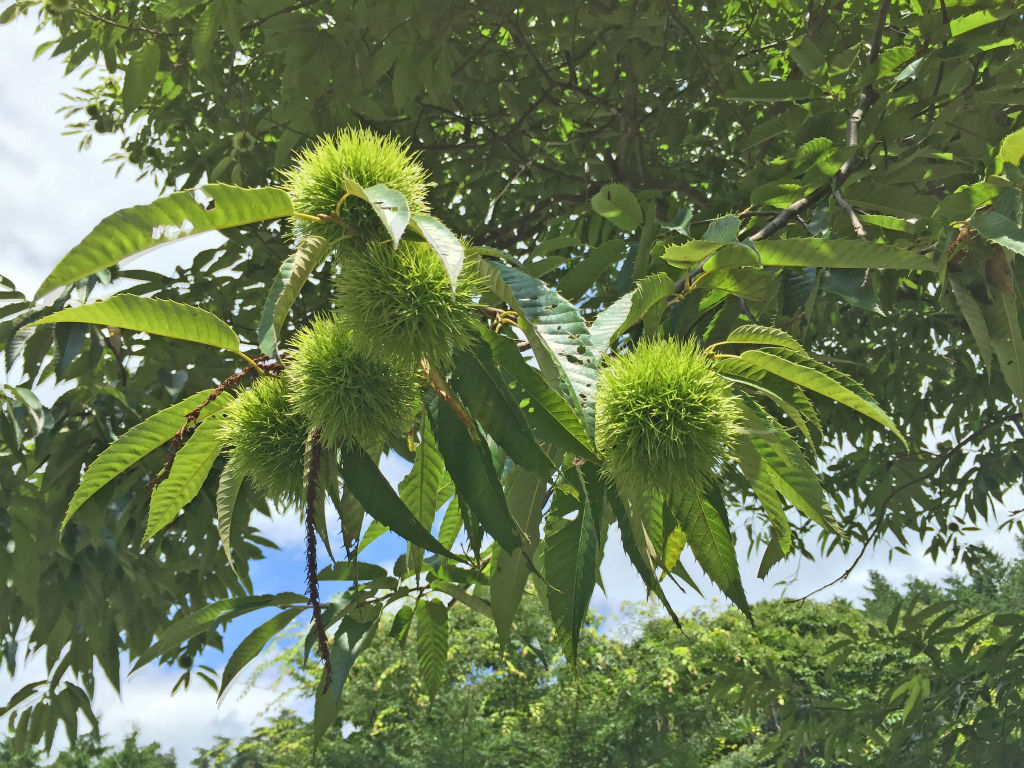 場内入口の栗林の栗の実も前回の記事から比べるとだいぶ大きくなって