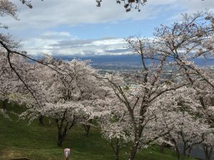 ちょっと物足りない気もしましたが、見晴らしのいい丘の上からは桜越しに甲府盆地を