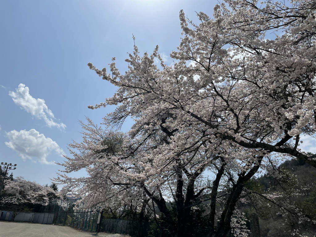 写真の桜はキャンプ場から1㎞ほど下った旧清川小学校の校庭に咲く桜の木で