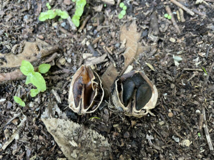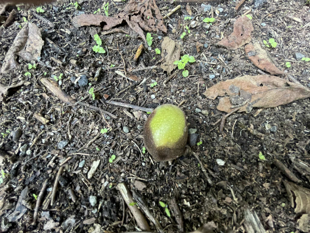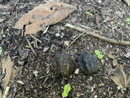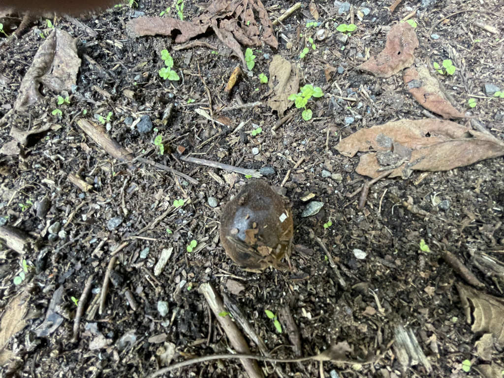 【次男】完熟して地面に落ちて周りの果肉が腐って黒くなってきます↓